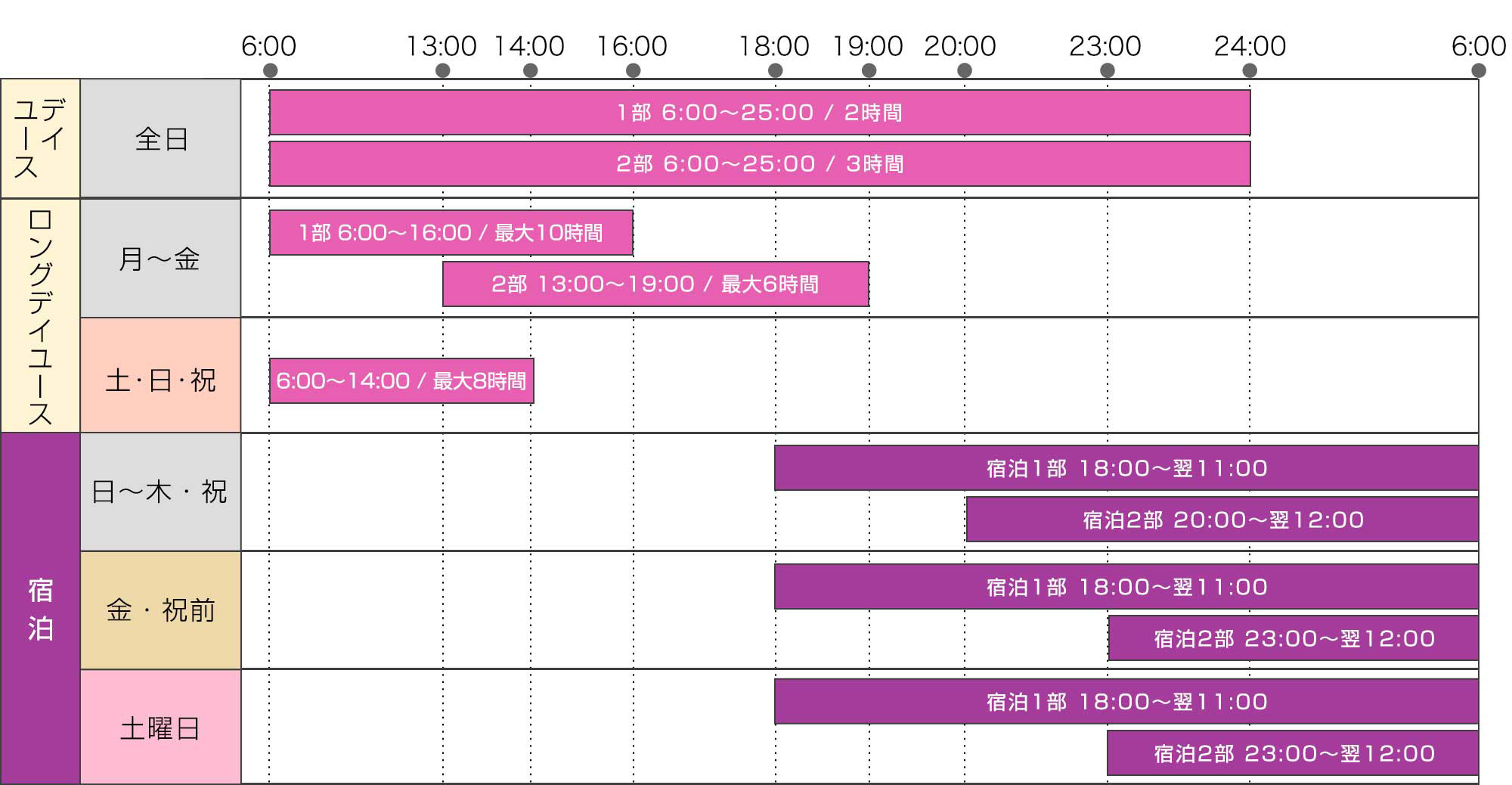 | 価格帯 | デイユース 3990円~ / 宿泊 8490円~ | デイユース 4800円~ / 宿泊 8990円~ | デイユース 5000円~ / 宿泊 9290円~ | デイユース 5500円~ / 宿泊 9690円~ | デイユース 5800円~ / 宿泊 9890円~ |